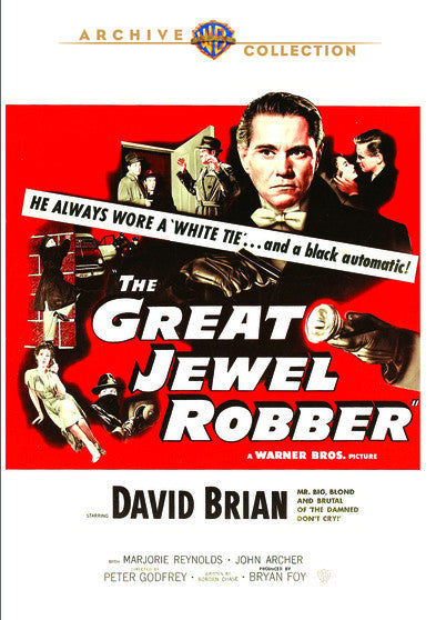 David Brian stars as a philanderer who uses his charms to steal from the rich and famous in this incredible-but-true crime thriller costarring Marjorie Reynolds. Escaping from a Canadian prison, womanizer Gerard Dennis (Brian) heads to New York, where he uses his conquests to help rob the wealthy. Marrying a gullible nurse (Reynolds) who begs him to go straight, Dennis hops a train to the coast when she rats him out to the cops. Hooking up with the Hollywood crowd, Dennis proceeds to burgle the stars, as he keeps one eye out for the ladies and the other out for the law. Set between the years 1947 and 1948, when Dennis stole over one million dollars in jewels, The Great Jewel Robber was written by Borden Chase, whose credits include Red River and Winchester '73, and his daughter Barrie Chase, a dancer who gained fame as Fred Astaire's partner in his TV specials of the 1950s and '60s.