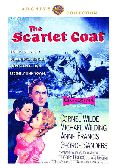 It takes a spy to catch a spy in this rousing Revolutionary War adventure directed by John Sturges and starring Cornel Wilde, Michael Wilding, Anne Francis and George Sanders. When top-secret military information is recovered from the body of a spy, American counter-intelligence officer Major John Bolton (Wilde) realizes there's a highly placed turncoat in the ranks. Posing as a deserter, Bolton plays a dangerous game as he pretends to work for the British while attempting to ferret out the traitor's name. Shot by Academy Award -winning cinematographer Paul C. Vogel (Battleground, 1949) on locations in Sleepy Hollow and Tarrytown, New York, The Scarlet Coat is M-G-M at its swashbuckling best, an action-packed tale of duty, betrayal and honor.