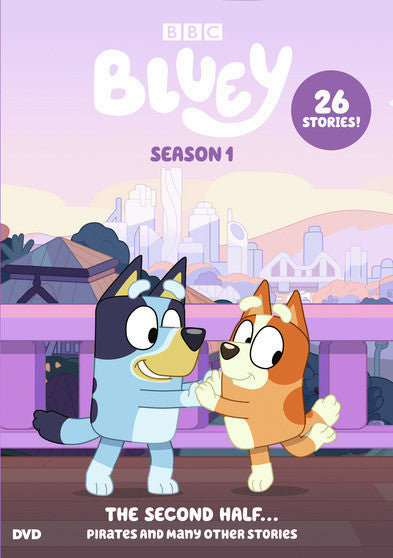 Bluey follows the adventures of a lovable and inexhaustible six-year-old Blue Heeler puppy who lives with her dad, mum and four-year-old little sister, Bingo. EPISODES: Pirates, Grannies, The Creek, Fairies, Work, Bumpy and the Wise Old Wolfhound, Trampoline, The Dump, Zoo, Backpackers, The Adventure, Copycat, The Sleepover, Early Baby, Mums and Dads, Hide and Seek, Camping, Mount Mumandad, Kids, Chickenrat, Neighbours, Teasing, Asparagus, Shaun, Daddy Putdown, Verandah Santa
