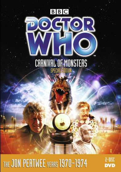 The Doctor has promised Jo a holiday on Metebelis 3, but the TARDIS materializes not on the famous blue planet, but in the cargo hold of the SS Bernice, sailing to India in 1926. Despite all appearances, the Doctor insists that they are no longer on Earth, but Jo's not convinced, at least not until a sea dinosaur attacks the ship! Millions of miles from Earth, a traveling showman named Vorg and his lovely assistant have arrived on Inter Minor to bring a little sunshine into the humdrum lives of the Minorian officials and functionaries. The dilapidated device they've brought looks rather unpromising until Vorg explains that the entertainment the Scope offers is "live"- it holds actual, miniaturized, living creatures kidnapped from every corner of the universe. There are Cybermen, Ogrons and even a party of rare Tellurians aboard a quaint steamship.