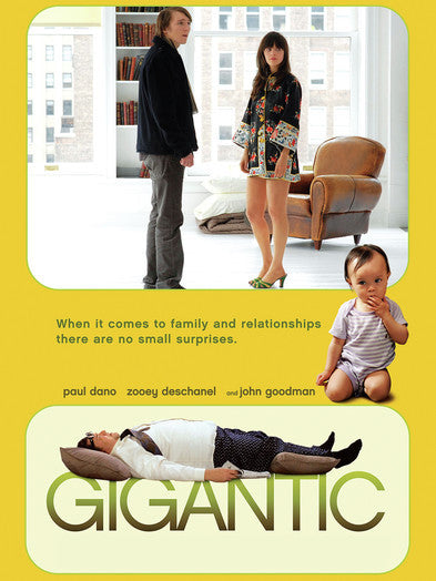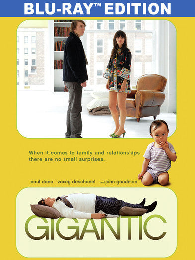 Brian Weathersby (Paul Dano) is a single, 28-year-old salesman at a high-end Swedish mattress company. As the youngest son in a line of successful brothers, Brian is searching for his place in the world. Unfulfilled by his work, he spends a good portion of his day pursuing his goal of someday adopting a baby from China. He gets swept up in romance with a lovely but misguided girl, Happy (Zooey Deschanel), when she comes in to his store one day and falls asleep on one of his beds. In order to win her over, he must compete with her father (John Goodman), an art-collecting loudmouth with deep pockets. This is a funny, surreal love story about the anxiety that comes along when two people with crazy families collide unexpectedly and fall for each other. This Blu-ray features surround sound, English subtitles for the deaf and hearing-impaired along with the official "Gigantic" trailer.
