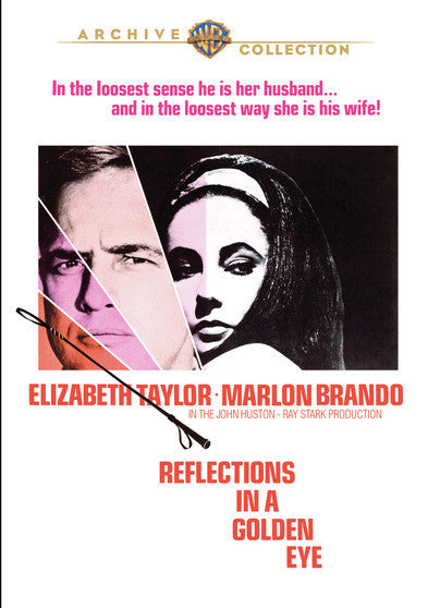 "An Army post in peacetime is a dull place." So begins Carson McCullers' famous novel of secret passion, Reflections in a Golden Eye. But beneath the smooth surface of military routine, a deadly tension mounts. Elizabeth Taylor and Marlon Brando star in this startling screen version that, like the book, crackles with mysterious, exotic energy. They play the Pendertons: He's a hidebound career officer wrestling with inner demons; she's a caged lioness needful of love, whatever the source. Their off-kilter relationship plays out under the voyeuristic gaze of a soldier (Robert Forster) soon to become the focal point of tragedy. Provocatively directed by John Huston, and costarring Brian Keith and Julie Harris in moving supporting performances, this spellbinder is powerful and complex -- just like that emotion called love.