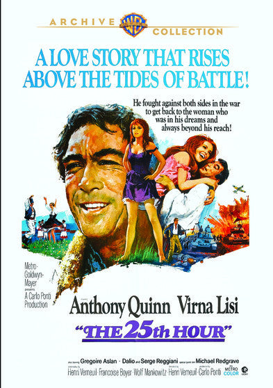 A Romanian peasant (Anthony Quinn) endures eight years of hardship and war in The 25th Hour, a suspense drama set during WWII and based on C. Virgil Gheorghiu's best-selling novel. Falsely branded ajew by the district police officer (Gregoire Aslan) who covets his wife (Virna Lisi), johann Moritz (Quinn) is declared an undesirable and deported to a labor camp as punishment. Rescued by a half-mad colonel (Marius Goring) who declares him the perfect Aryan, Moritz joins the SS, where his work for the Nazis could save his life if the Allies don't hang him first.