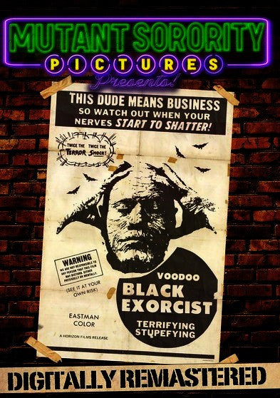 Voodoo Black Exorcist -- Digitally Remastered. This dude means business, so watch out when your nerves start to shatter! In this unusual hybrid of horror and Blaxploitation film, the mummy of a long dormant, but powerful Caribbean voodoo priest (Aldo Sambrell, "The Good, the Bad and the Ugly") is revived on a luxury ocean liner and begins to terrorize the passengers. Since its release in 1975, the film has become a cult classic and is still screened at movie houses across the country.